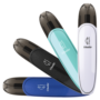 Four sleek vape devices in black, blue, teal, and white colors.